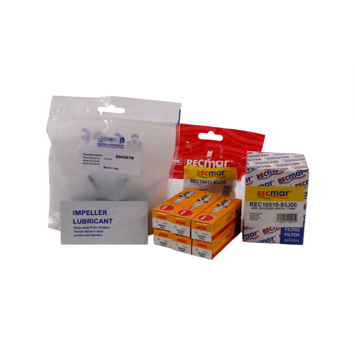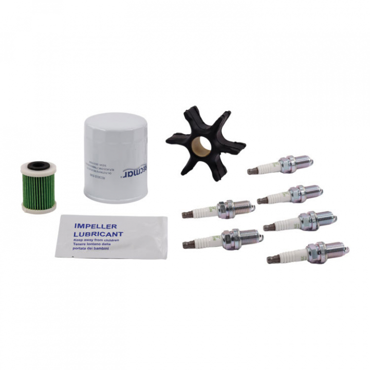 Suzuki servicesats till DF200, DF225, DF250(2011+) OEMnr. 17400-93855-000 Innehåller oljefilter, bränslefilter, tändstift och impeller.