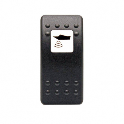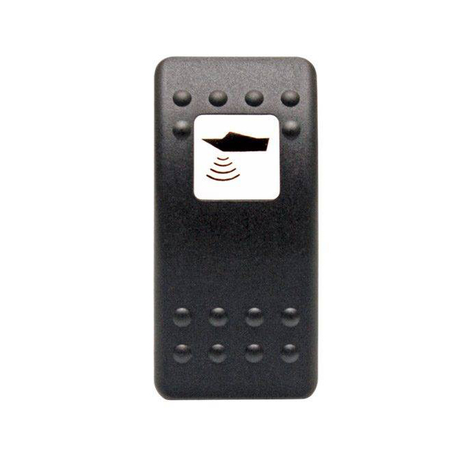 Svart huv Contura II med ljusgenomsläpp och symbol till Carling strömbrytare. Finns i flera utföranden med olika symboler. Monteras enkelt genom att endast tryckas på plats samt är även enkelt att byta huv vid behov.
