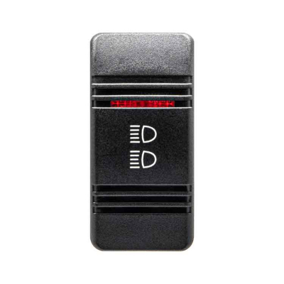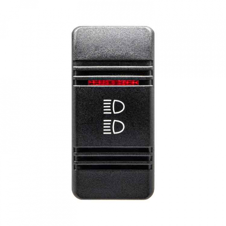 Svart huv Contura med rött ljusinsläpp till Carling strömbrytare. Monteras enkelt genom att endast tryckas på plats samt är även enkelt att byta huv vid behov.