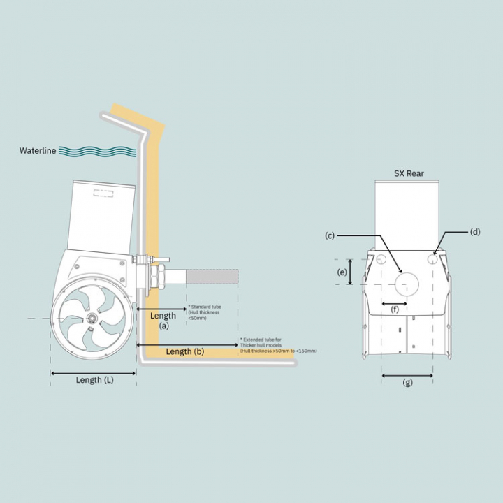 SX50 är Sleipners mest kompakta thruster hittills, med 50–62 kg dragkraft. Den mångsidiga designen gör den enkel att installera på båtar med alla skrovformer, upp till 37 fot.