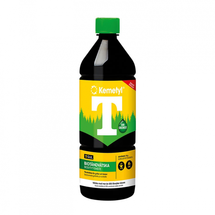 Kemetyl T-Gul Biotändvätska är en typ av tändvätska som är mindre belastande för miljön jämfört med traditionell tändvätska eftersom den innehåller förnyelsebar råvara och har ett lägre koldioxidutsläpp.