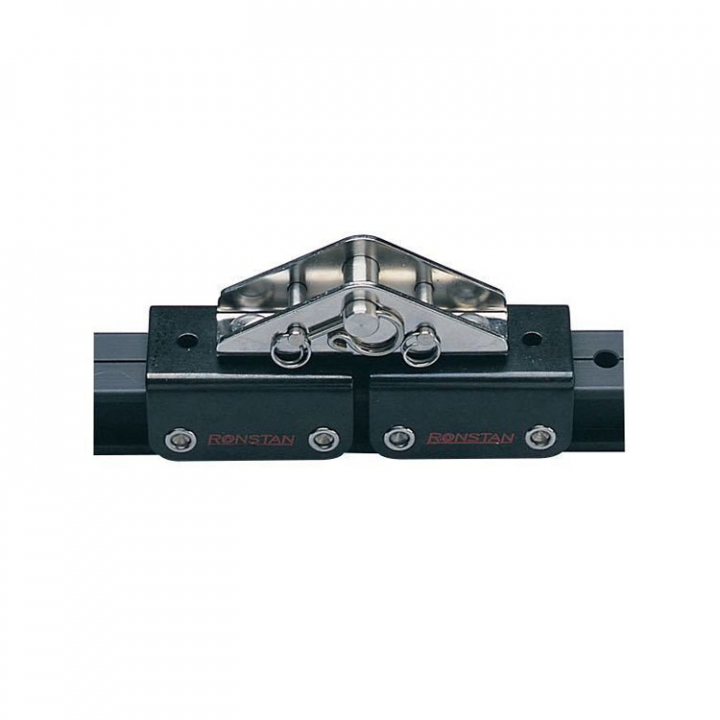 Skotvagn tandem för 32 mm I-skena, avsedd för båtar upp till 40 fot. Skenorna kan böjas i form. Skenorna är tillverkade av svart eloxerad aluminium.