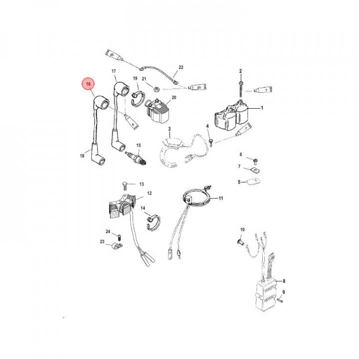 Tändkabelsats (813715A2) till Mercury 6-25 hk utombordare, titta i din epc för att säkerställa att delen passar just din motor.