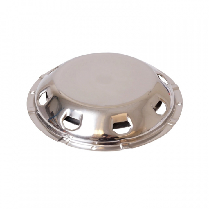 • Tannoy däckventil öppen med kåpa i rostfritt stål.