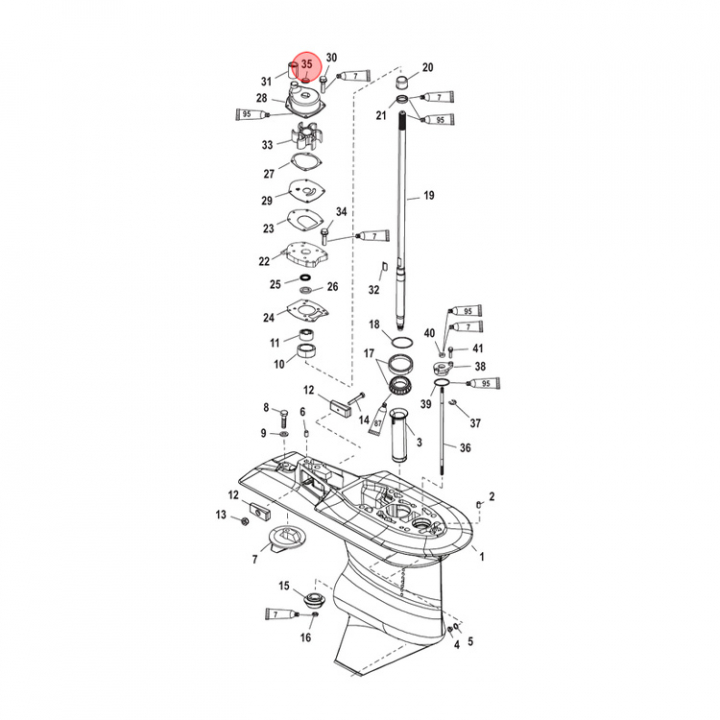 Tätning (8M0142851) till kylvattenrör impellerhus på Mercury 40-115 och flera V6/V8 motorer (4-takt). Titta i din epc för att säkerställa att delen passar just din motor.