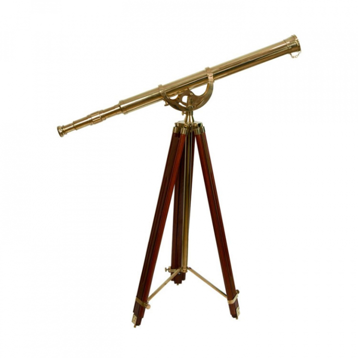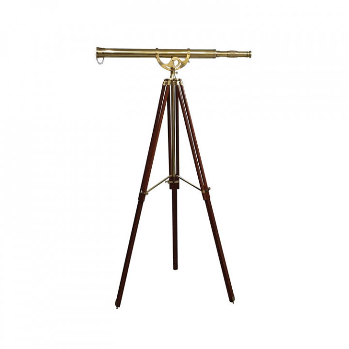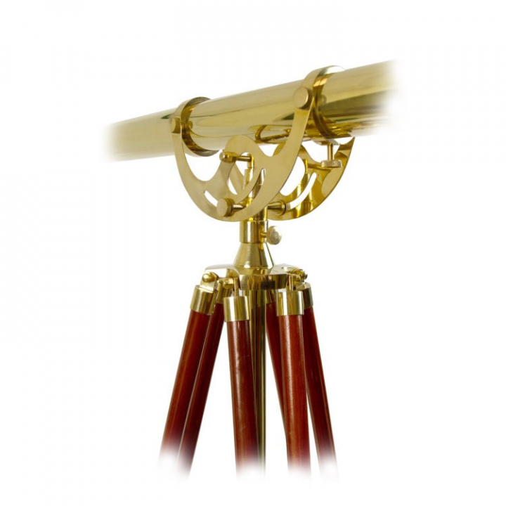 Teleskopkikare av hög kvalitet. Trästativet är tillverkat av "sheesham" trä (utseende snarlikt teak) med mässingsbeslag.