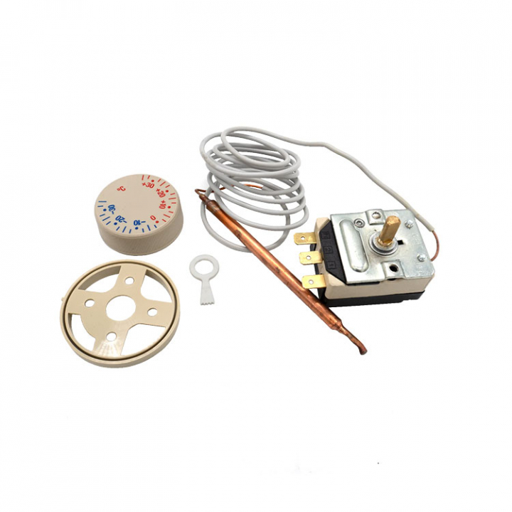 Termostatsats kyl/frys bulb är ett kit som används för att reglera temperaturen i både kyl- och fryssystem. Detta kit inkluderar en termostat och en bulb, som fungerar som en temperaturgivare. Bulben placeras i kyl- eller frysenheten och mäter temperaturen inuti utrymmet. Termostaten använder denna information för att styra kompressorns drift, vilket säkerställer att rätt temperatur hålls för att skydda innehållet. - Egenskaper