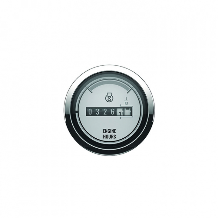 Timmätare Vit/Krom (8M6020080), analogt instrument till Mercury. Visar antal körda timmar. - Egenskaper