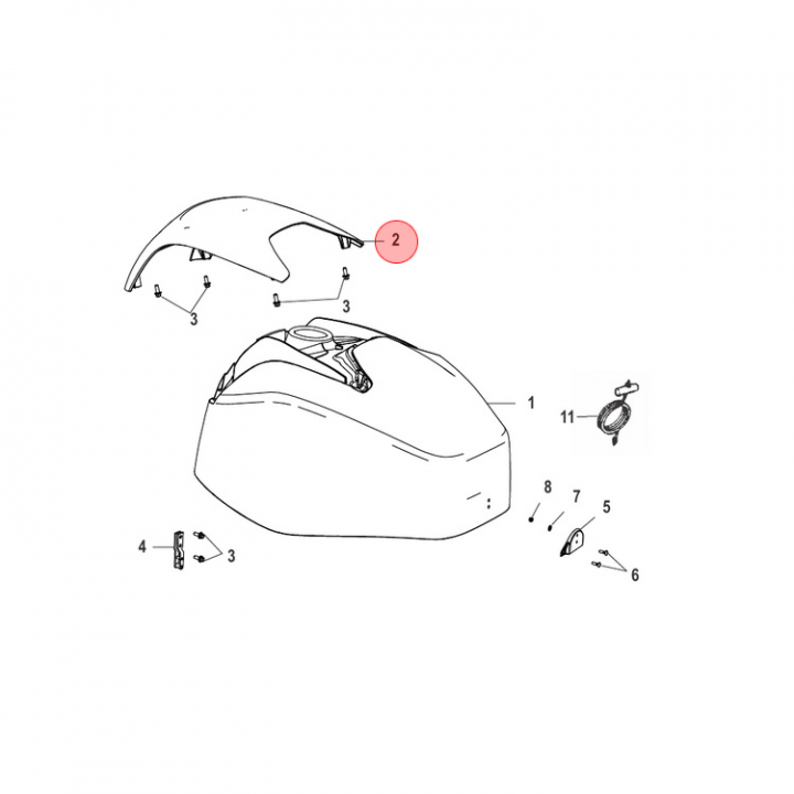 Toppkåpa Bakre (8M0159887), sitter baktill på toppkåpan till Mercury 40/50/60 EFI. Titta i din epc för att säkerställa att delen passar just din motor.