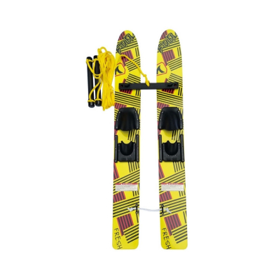 Vattenskidor med bred nos för bättre lyft i starten. Konkav midja och ställbar bindning. Avtagbart tvär-stöd för att underlätta starterna i början.