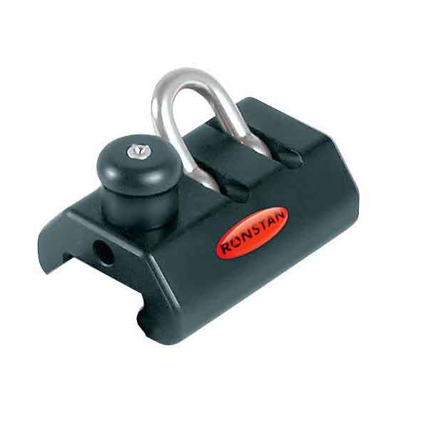 Travare med schackel, stopp och glidstavar för 19 mm X-skena. Skenan monteras med 5mm försänkta skruvar med 100mm mellanrum.