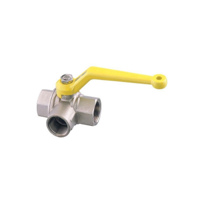 Standard trevägskran med full genomströmning, lackerat metallhandtag.