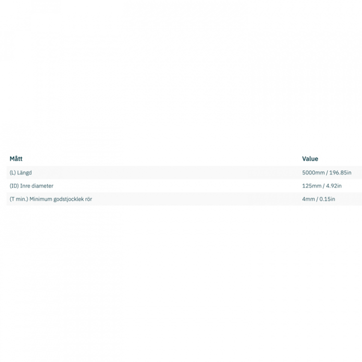 Tunnel i GRP med måtten ø125 x 4 x 5000mm. Kompatibel med bland annat SEP40, SEP30, SE40 och SE30.