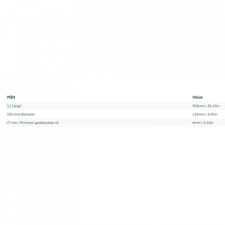 Tunnel i GRP med måtten ø125 x 4 x 900mm. Kompatibel med bland annat SEP40, SEP30, SE30, SE40 och många fler.
