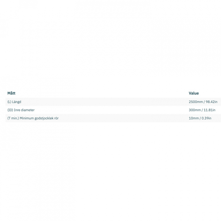 Tunnel i GRP med måtten ø300 x 10 x 2500mm. Kompatibel med bland annat SAC360, SH400, Ac-serien och många fler.