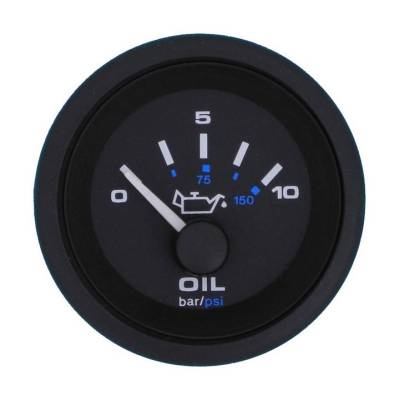 Veethree Premie Pro Line Imfri instrumentserie. Svart ytterring. Vita siffror och vit nivåmarkering på svart botten. Visarnålen är vit med ett svart centrum. Låg profilram som följer instrumentets glas för att eliminera att vatten ligger kvar på kanten. Glaset är repfritt och samtliga instrument levereras med belysning för bästa möjliga nattavläsning. Instrumenten är imfria.