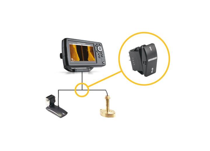Givarväljaren ger möjlighet att ansluta två givare till ett ekolod. Idealisk när två givare är monterade. Endast en givare kan vara aktiv åt gången.