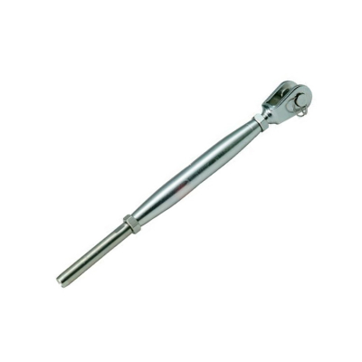 Man skruvar loss gaffeln och terminalen och drar åt dem med en mutter. Sedan monterar man den på önskad plats. Till sist drar man åt vantskruven, och därmed vajern, genom att sticka en tunn skruvmejsel eller liknande genom det lilla hålet i mitten och vrida tills vajern är helt spänd.
