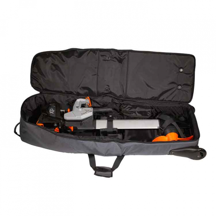 • Skyddar motor och batteri vid transport.• Motorväskan har hjul för att underlätta transport.