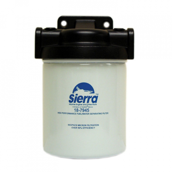 Bränslefilter/Vattenavskiljarsats i Mercury utförande. Hållare i aluminium med 4 anslutningar (2 in & 2 ut) 3/8" NPT gänga, 2 st pluggar ingår. - Egenskaper