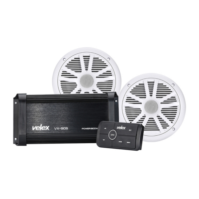 En perfekt musikanläggning för småbåtar från VELEX. 2 st. marinhögtalare på 6,5" ingår. Klass A/B-förstärkare med 500 W max uteffekt.