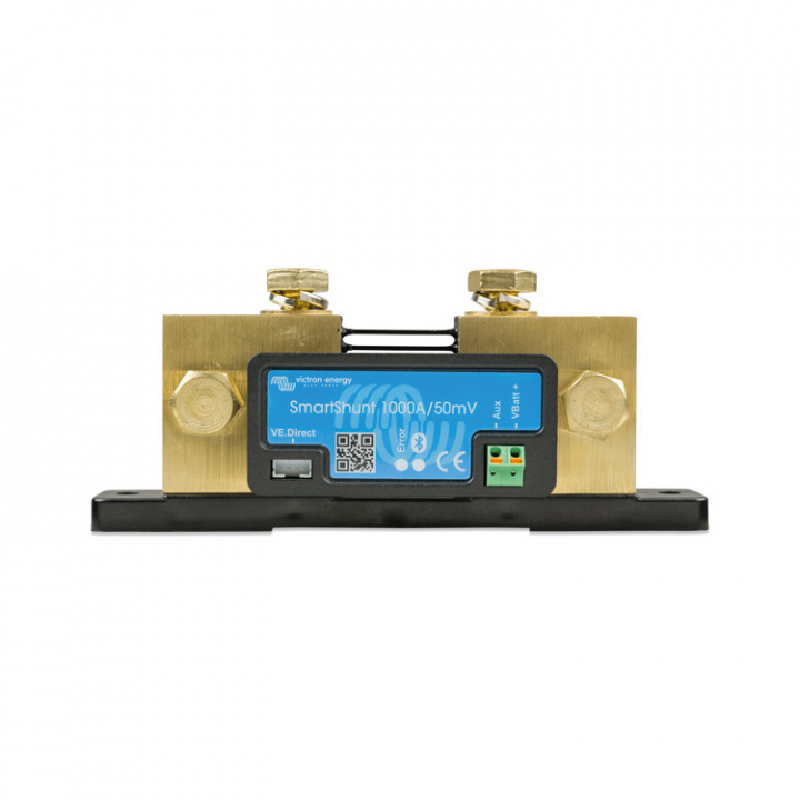 SmartShunt är utrustad med Bluetooth, en VE.Direct-port och en anslutning som kan användas för spänningsövervakning av ett annat batteri, mittpunktsövervakning eller en temperaturgivare.