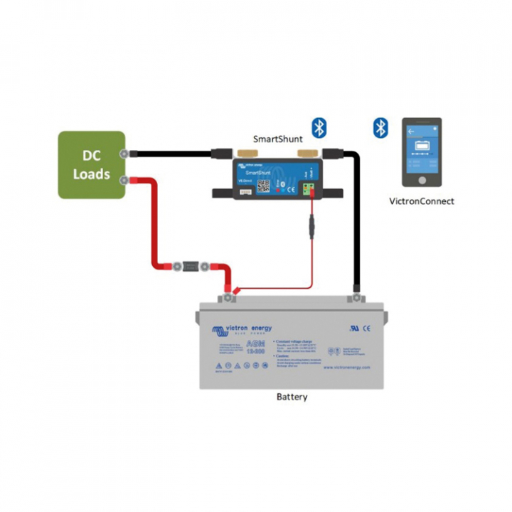 SmartShunt är en allt-i-ett-batterimonitor men utan skärm. Din telefon fungerar som skärm. SmartShunt ansluts via Bluetooth till VictronConnect-appen på din telefon (eller surfplatta) och du kan enkelt läsa av alla tillgängliga batteriparametrar, t.ex. kapacitet, spänning, ström, historiska data med mera.