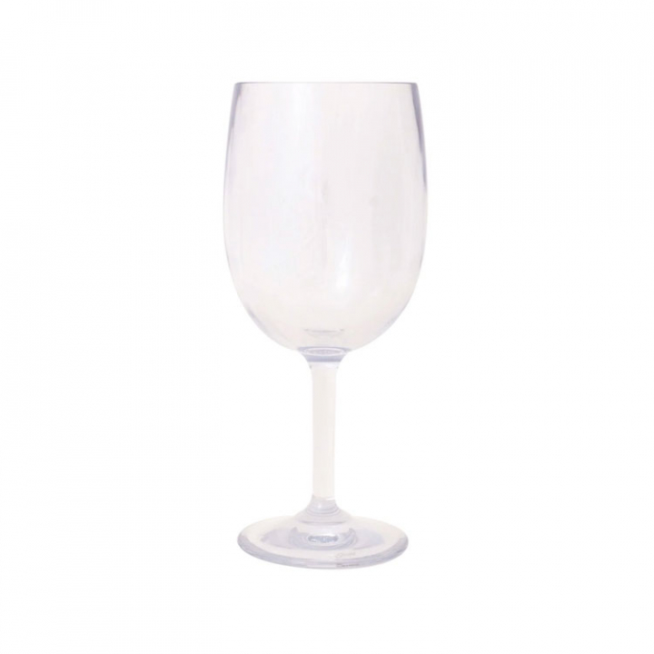 Vinglas tillverkad i polykarbonat, ett okrossbart material med samma elegans och klarhet som mineraliskt glas.
