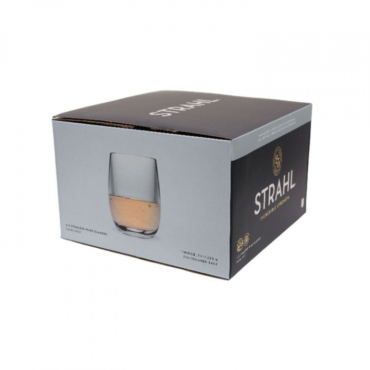 Glasen har elegant design och är utan maskinskarvar, vilket ger en otroligt snygg finish. Strahl-glas är ett säkert och hållbart alternativ till vanligt glas och kan diskas i diskmaskin.