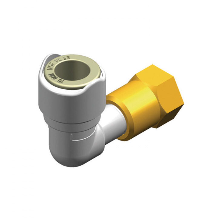 Vinkeladapter med hon-koppling i mässing och PVC från Whale i 2-pack.