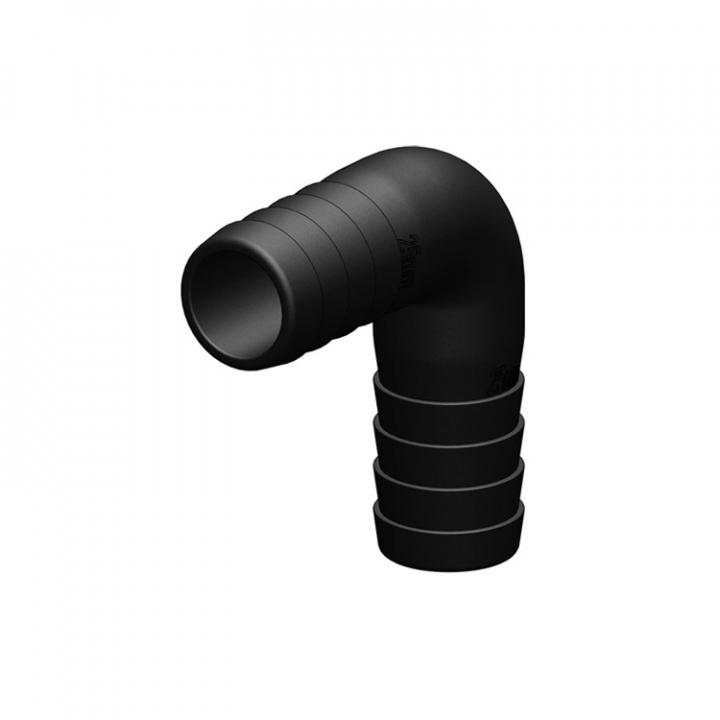 Vinkelstycke 90° i plast som passar för slangar från 19 till 50 mm.