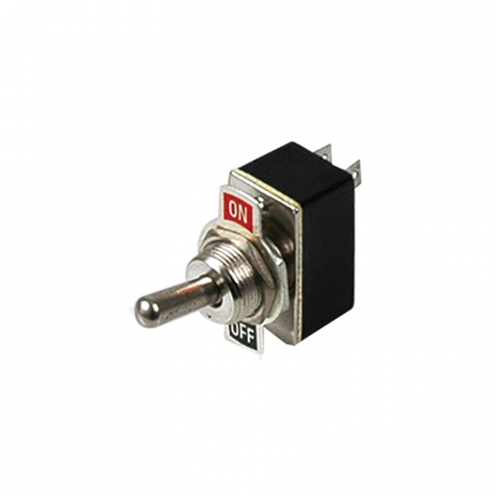 Vippströmbrytare i metall 2-polig. Frontplatta med texterna "On" och "Off". - Egenskaper