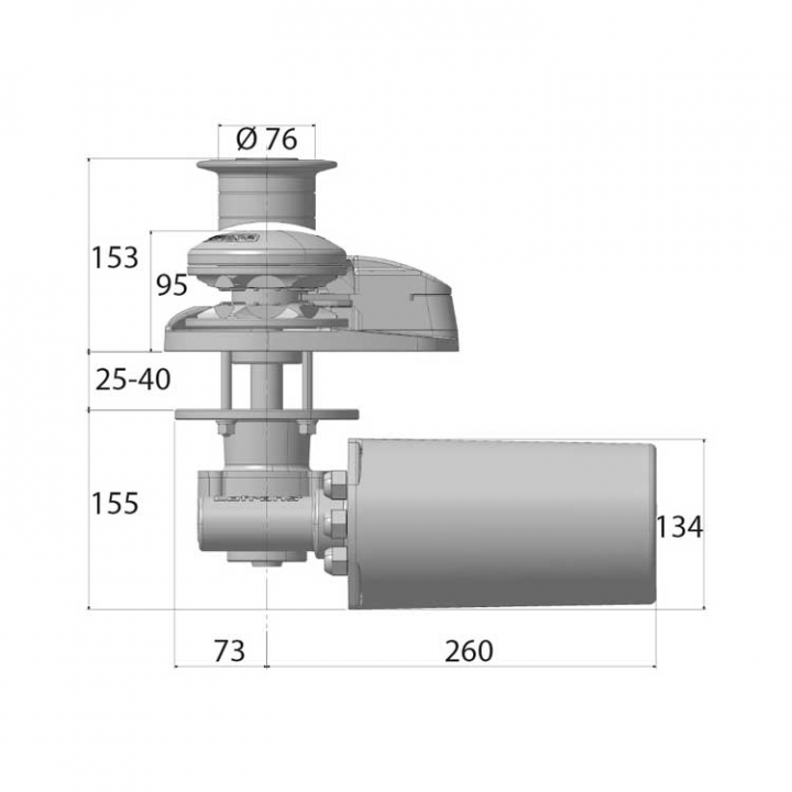 Hus i polerat svartpläterad brons. Kan köras med kätting eller med lina/kättingkombination. Manuell frifallsfunktion, installerad kättingäknare, IP67 kraftfull elmotor och växelhus i eloxerat aluminium. Inkl. externt relä och handtag.