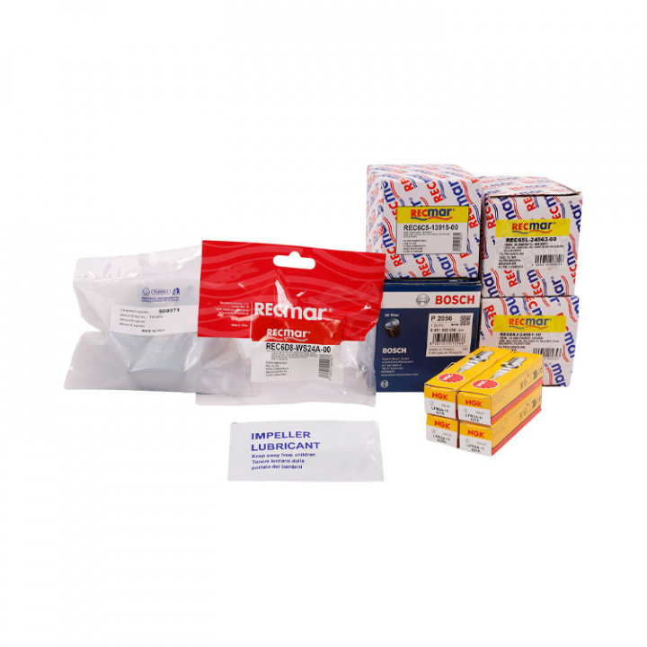 Yamaha servicesats till F150A(2003+), F150B(2012+), F150C(2015+), F150D(2015+). Innehåller oljefilter, bränslefilter, tändstift och impeller.